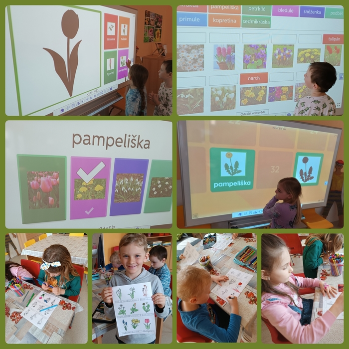 Jarní rostliny jsme také poznávali na interaktivní tabuli, v malovaném kvízu nebo při venkovních procházkách.