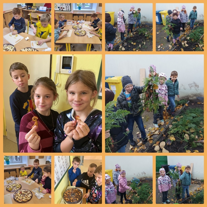 Na začátku listopadu starší družina krájela a sušila jablka, křížaly chutnaly všem. Mladší děti zase ochotně pomohly se sklizní mrkve ze školního záhonu, byla opravdu dobrá, sladká.