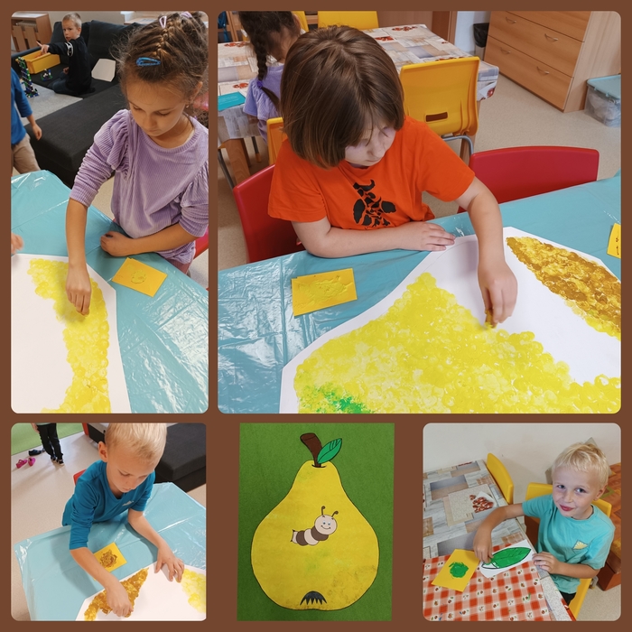 Obří hruška malovaná temperou doplní naši výzdobu Sokolovny z minulého týdne.