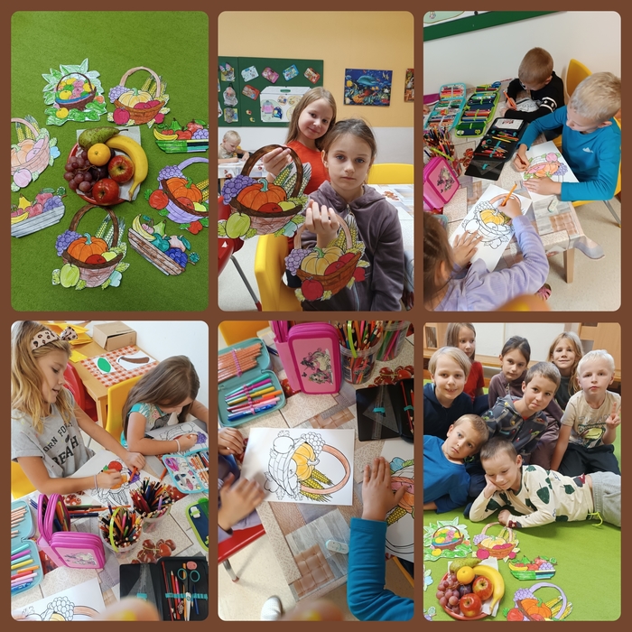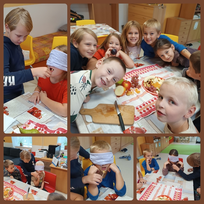 Podzim nám dává také ovoce. Povídali jsme si o něm, malovali i ochutnávali. Dva tropičtí „vetřelci“ přišli k chuti také.