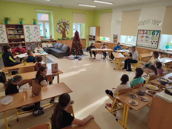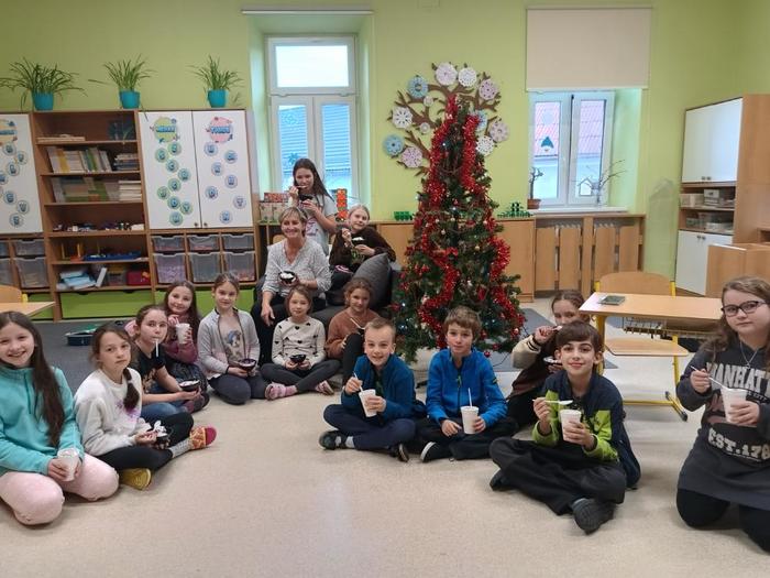 Na vánočním posezení s nadílkou dárků do družiny jsme si společně zazpívali koledy. Ježíšek dětem naložil potřebné věci - tavné pistole, lepidla a hru Na dopravu. Děti si mezi sebou také nadělily pěkné dárky. Všichni byli spokojeni a už se velice těší na Vánoce.