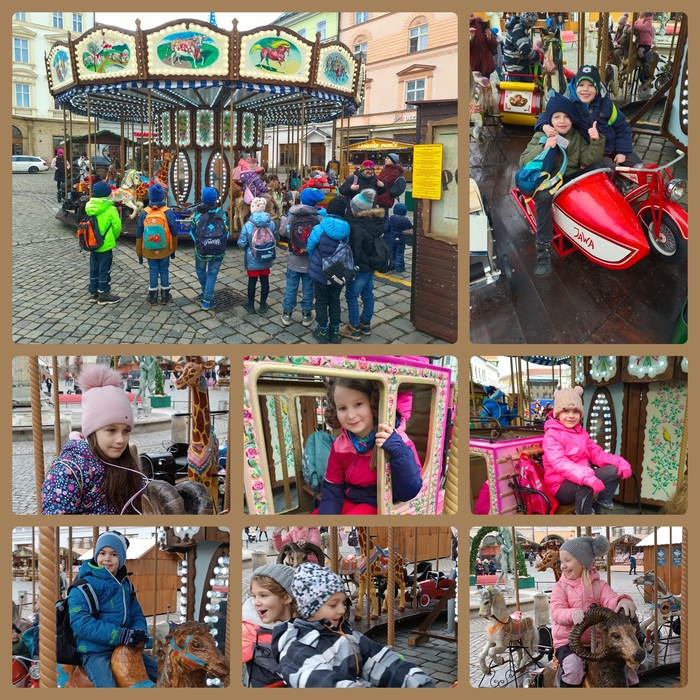 Středeční výjezd do Olomouce jsme si zpestřili návštěvou Vánočních trhů. Kromě očekávaných nákupů a atrakcí nás překvapilo setkání se strašidlem. Po prvním úleku se z něho vyklubal žák šesté třídy, milý a velmi slušný, neodmítli jsme nabídku k vyfotografování. Další nákupy i jízda na kolotoči již proběhly bez nesnází.
