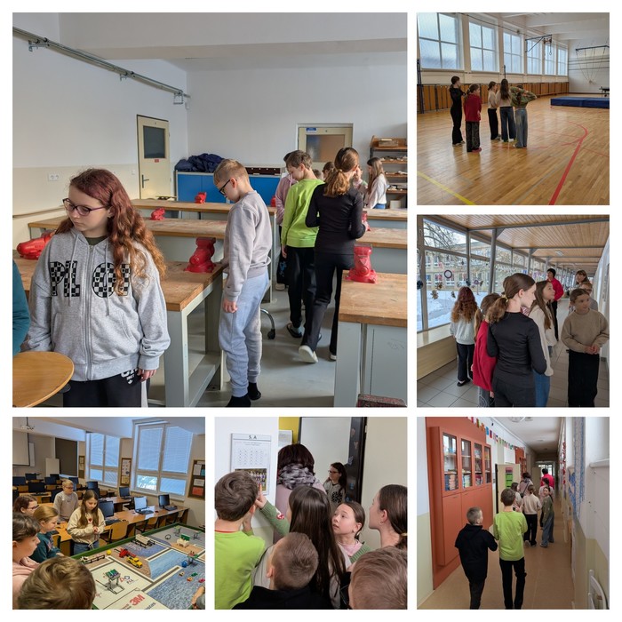 Po příjezdu nás přivítaly paní ředitelka a paní zástupkyně, které se našim žákům věnovaly s velkou ochotou. Provedly nás školou, představily některé učebny a přiblížily, jaké možnosti škola nabízí. Děti tak měly příležitost porovnat různé způsoby práce, klást otázky a rozšířit si obzory o tom, jak může výuka na druhém stupni vypadat.