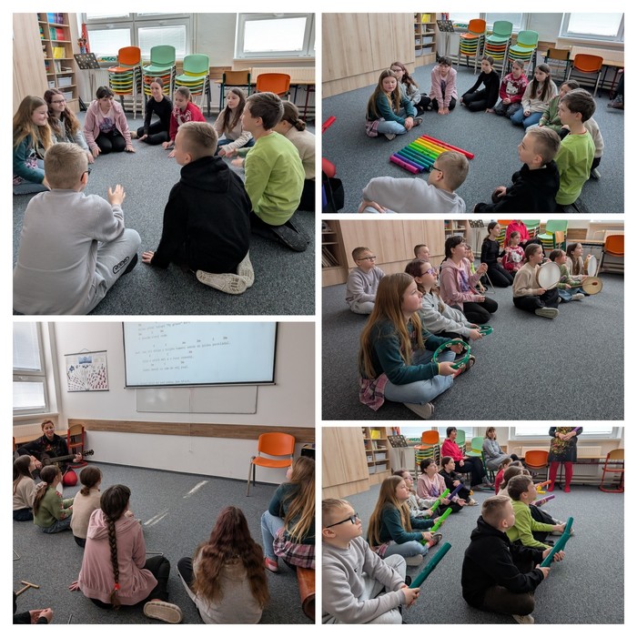 Součástí programu byla také ukázková hodina hudební výchovy. Pod vedením šikovné paní učitelky si žáci vyzkoušeli zpěv, rytmická cvičení i práci s hudebními nástroji.
