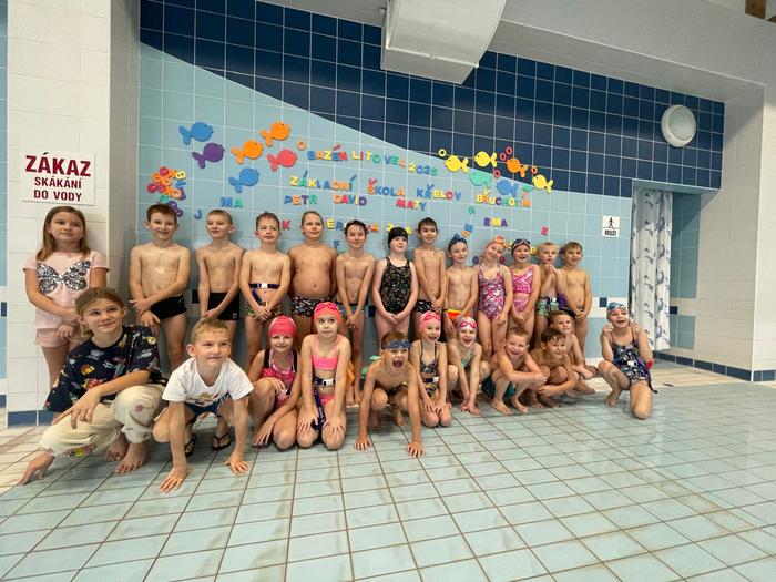 Naši prvňáčci spolu se žáky druhého a třetího ročníku mají úspěšně odplaváno. Plavecký výcvik probíhal od září do listopadu na bazéně Základní školy Vítězná v Litovli. Žáci se učili správné techniky plavání, soutěžili, hráli si a zažili i spoustu legrace. Dnes v pátek 21. listopadu ještě proběhlo náhradní plavání. Kromě drobných sladkých odměn za splněné soutěže a pochval, které žáci dostali při některých hodinách plavání, je jim odměnou krásné Mokré vysvědčení.
